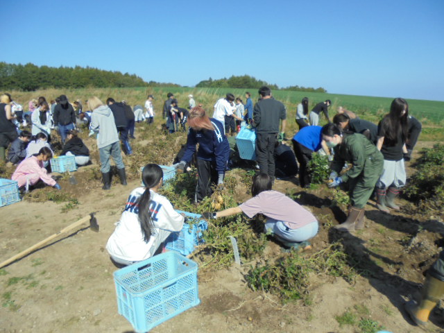 作物栽培の実習 ジャガイモの収穫です
