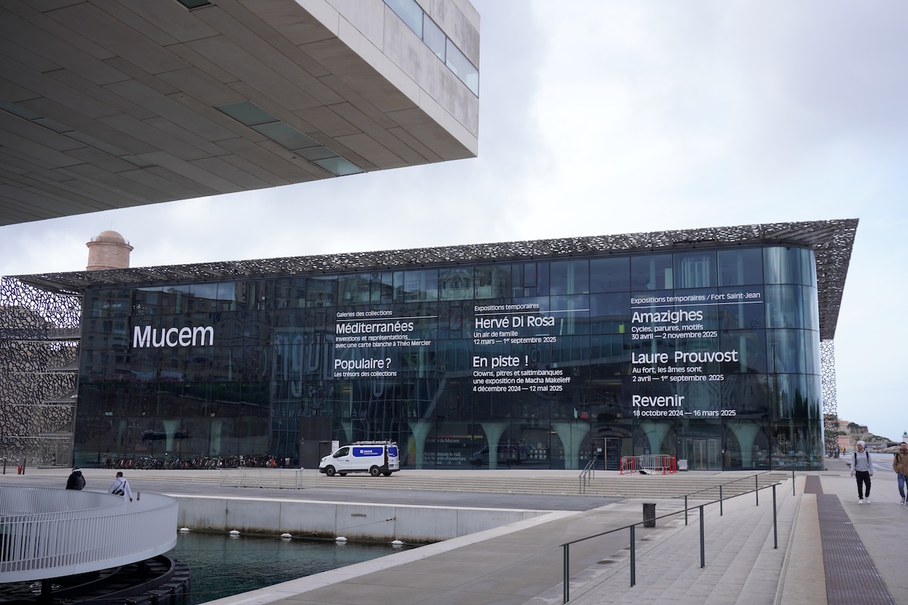 ヨーロッパ・地中海文明博物館[Musée des Civilisations de l'Europe et de la Méditerranée(MUCEM)]はフランス南端のマルセイユ市 Marseille にある国立博物館。マルセイユは地中海に面し、古くから貿易港であり多くの民族が行き交う場所としてとして栄えてきた。そこに建つ博物館の歴史は3階建てだ。最初は1878年パリ万博の会場となったトロカデロ宮殿に開館したトロカデロ民族誌学博物館[Musée d’ethnographie du Trocadéro]、次いで1930年代にこの資料の一部を引き継いだ芸術・民間伝承博物館[Musée national des arts et traditions populaires(MNATP)]、この博物館が2005年に閉館した後、資料を継館したのがヨーロッパ・地中海文明博物である。開館は2013年。なお、トロカデロ民族誌学博物館の資料を継承した姉妹館には、他にトロカデロ宮殿の場所を引き継いだシャイヨ宮にある人類博物館[Musée de l’ Homme]、第三世界民族芸術品を集めたケ・ブランリ美術館[Musée du quai Branly]がある。