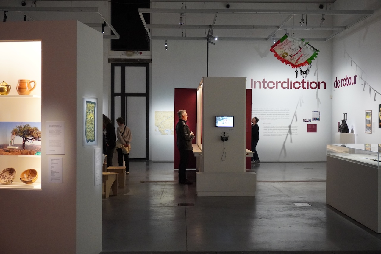 もう一つの観覧した特別展は「帰還:地中海回帰の経験」[Revenir Expériences du retour en Méditerranée]。これも現代美術的な展示で、小さく地味な資料で構成された展示室全体が訴えかける。資料1点1点を見せるというより多数の資料の構成から移民の経験を追体験する、心の内を垣間見るといった内容だった。空間を移動して時間は自分で決める映画のような展示というのだろうか。資料はパスポートの個人情報欄や出入国印、移動経路が描かれた地図、荷物を満載した自動車など引っ越しや移動の写真、どうということのない肖像写真などで構成される。移動を象徴する美術作品はあるものの、うっとりするような芸術作品、珍しい道具や変わった形状の品などは無い。日常的で目立たない、それでいて個人の出自や遍歴を証明するようなものたちだった。とにかく文字や文章の役割が大きく、その場で展示を理解するには仏語の十分な理解力や速読能力が必要。英語はコーナー解説にはあるものの、とりあえず読める程度だと文章全体で何が言いたいのかがわからない。翻訳書の章とびらに詩や文学作品の抜粋が掲載され日本語になってはいるが意味不明といったところ。自分の場合は「展示体験の失敗」というのかこちらの理解しようとする努力を拒絶するような展示に感じてしまった。