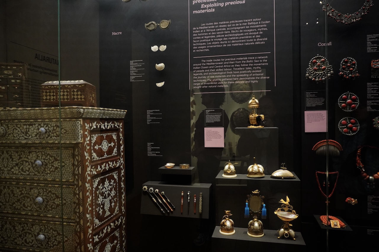 ヨーロッパ・地中海博物館の展示の隠れた主題は、人類の創造性なのかも知れない。この常設展示の内容は自然の素材を華やかな宝飾品へ加工する技術や発想、彫刻にしても自然物の模倣よりも想像物を多数展示する。これらは生産性や合理性とは離れた想像力の賜物である。技術や道具はそこから逆算して作られたもの、想像力こそ文明の牽引力だと伝えたいのかも知れない。知恵といっても日本の民具や地域文化の展示で見られるような自然や環境への適応力ではない。それを超えた一段上の高みにある文化、といっても高級文化や芸術ではない。日常の暮らしを彩る家具や食器、ファッションや宝飾品を生み出す技術と想像力を感じるのである。それがヨーロッパのエレガンスや高級ブランドにつながるかのように。