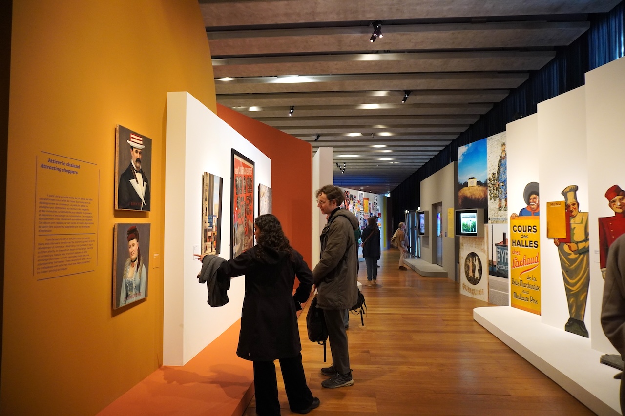 常設展「人気?:コレクションの逸品」が訪問の目的だった。噂どおり日本の郷土博物館とは全く異なる展示空間で、資料は元あった場所から切り離され単体で展示されていた。強いて言えば国立民族学博物館の展示が近い。美術品としての仏像の展示もおなじ路線だろうか。民具や道具用具の展示は、実際の使用場面を想定した高さや向きで陳列するという考え方があるが、ここの展示は全く異なる。椅子や容器が頭上にあったりする。それから商品や広告、土産品の展示も目立つ。日本の民俗展示は近代や近代化、商売の展示を避ける傾向がある。商店街の展示は販売や経済経営ではなく、街並みや賑わいといった社会的な文脈での展示が通常だろう。日本の郷土博物館や民俗展示のもう一つの特徴は地域特化主義、純粋な地域性の主張に見える。フランスでも郷土展示を行なう博物館は存在するが、ここMUCEMの展示はそれとは真逆といってよい。多文化、多民族、多様性、交流交換、などを全面に出した民俗資料の展示はどうなるのか。その回答はこの常設展示となる。